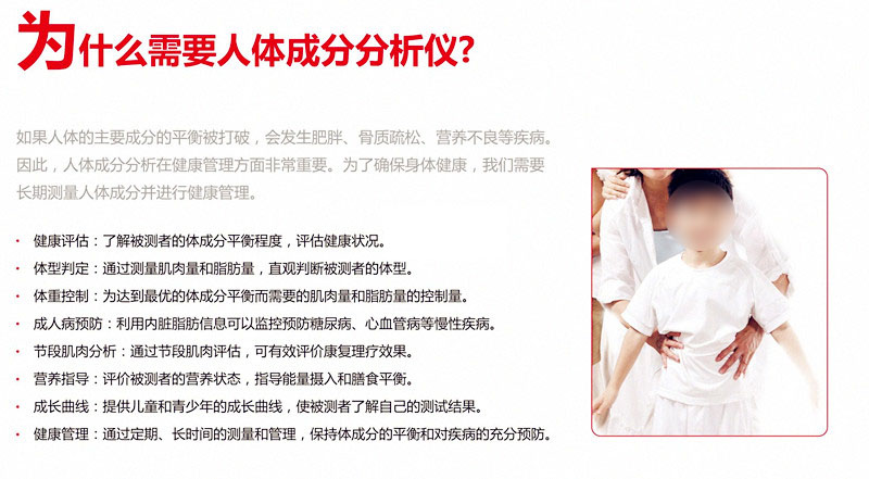 至今,判定肥胖是根据身高和体重计算出肥胖度。要准确地判断是否肥胖就必须知道脂肪组织的含量。但是体内脂肪量的判定并不是一件易事。人体成份分析仪是具有划时代意义的健康管理器械,它能在一分钟内测量出体重和体脂肪量。从此,51漫画在线登录页面免费阅读能够轻松地测量体脂肪,为您的健康生活提供重要的信息数据。靠谱的51漫画成人版下载-山东51漫画在线登录页面免费阅读品牌。